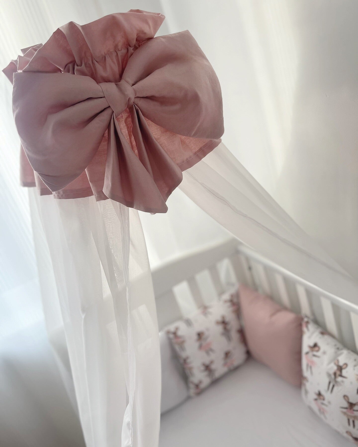 ✨ Radiet savam mazulim siltuma un maiguma pilnu vidi ar šo eleganto baldahīnu. Smalka tilla auduma aizkars un dekoratīva bantīte piešķir gultiņai īpašu šarmu, radot mierīgu un mājīgu atmosfēru saldam miegam.
